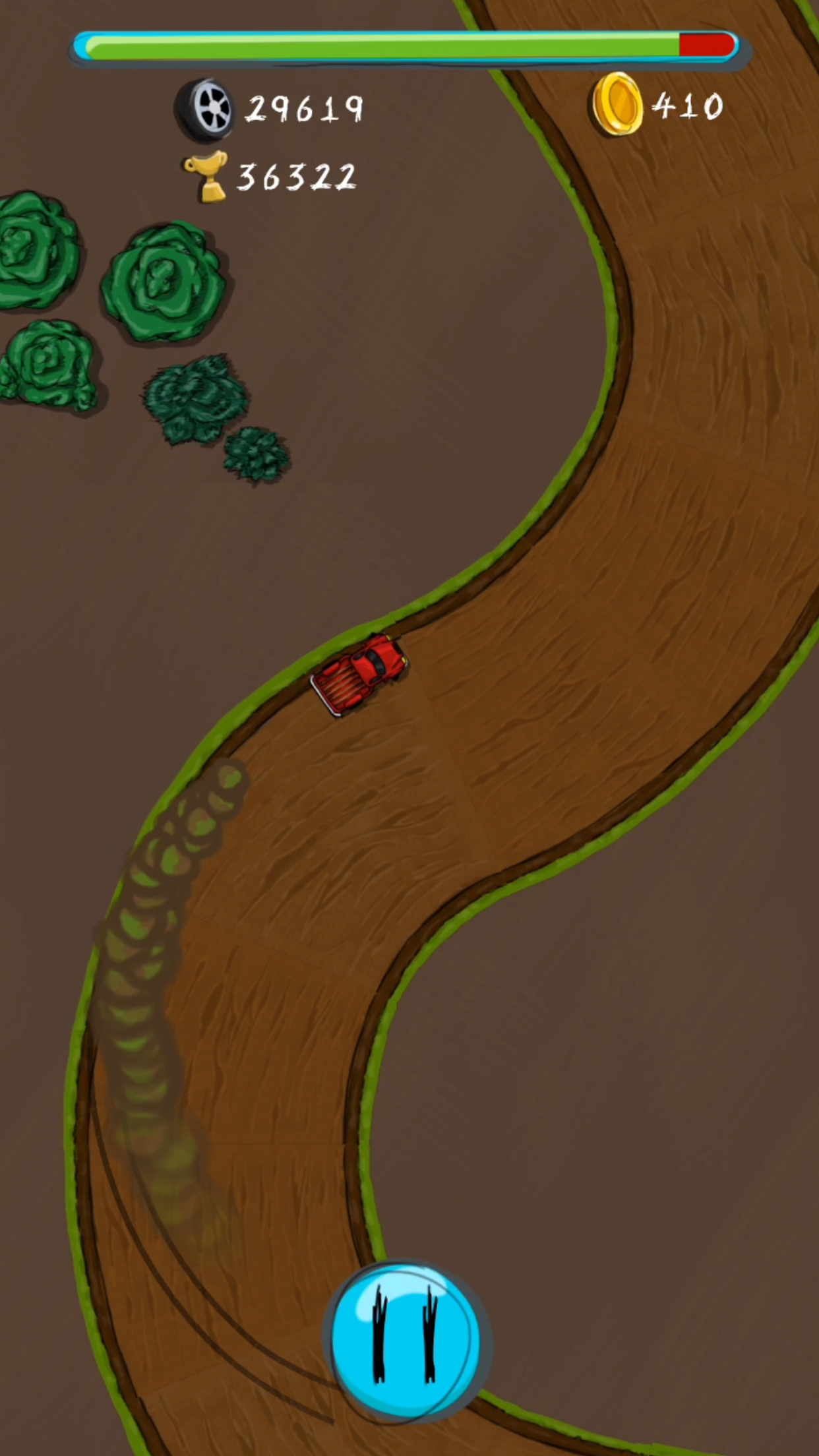 Infinite Roads is like and infinite runner. The player drives a car on an infinite road and tries to survive as long as possible. Driving off road makes the player lose “life” and if stays there for too long he eventually loses the game. Getting back on the road recovers the “life” back. It’s simple but effective. There are also jumps, holes and loops. Has the player progresses the road gets smaller and in worse conditions. What a crappy road trip this is! :p